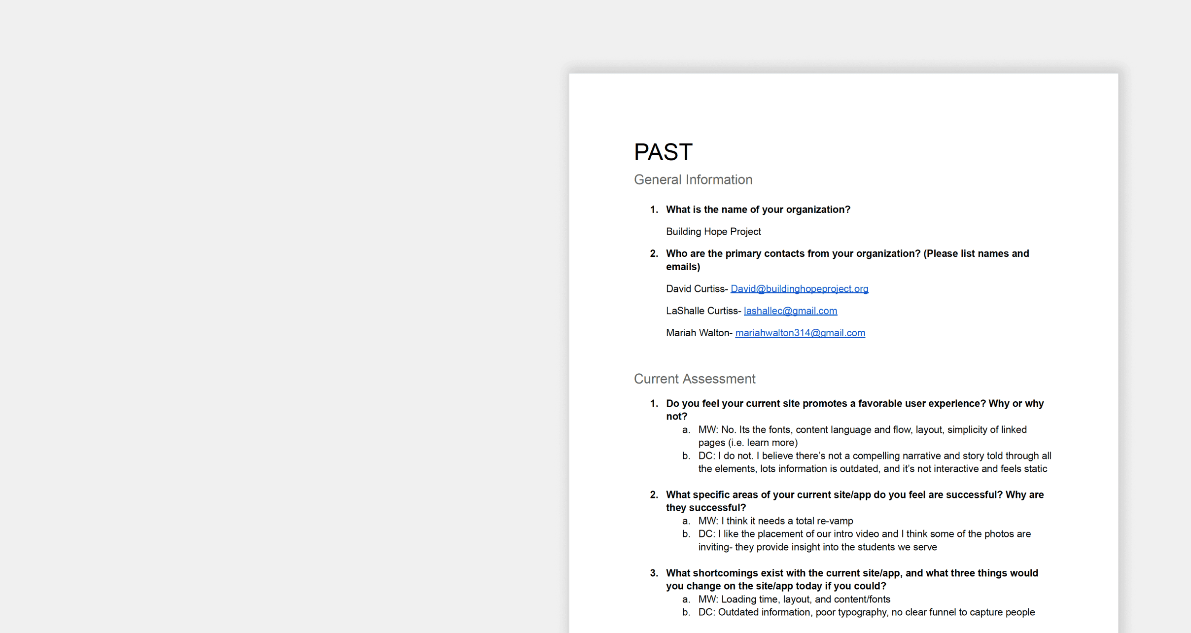 Building Hope Project, a Ugandan nonprofit focused on empowering youth through education, was struggling with an outdated website and brand identity. The original site lacked a compelling narrative, had outdated content, and failed to provide a clear funnel for key actions such as donations or newsletter sign-ups. Stakeholders reported that the site didn’t reflect the organization’s impact, credibility, or passion. This limited their ability to grow donations, onboard new partners, and reach the broader philanthropic community.